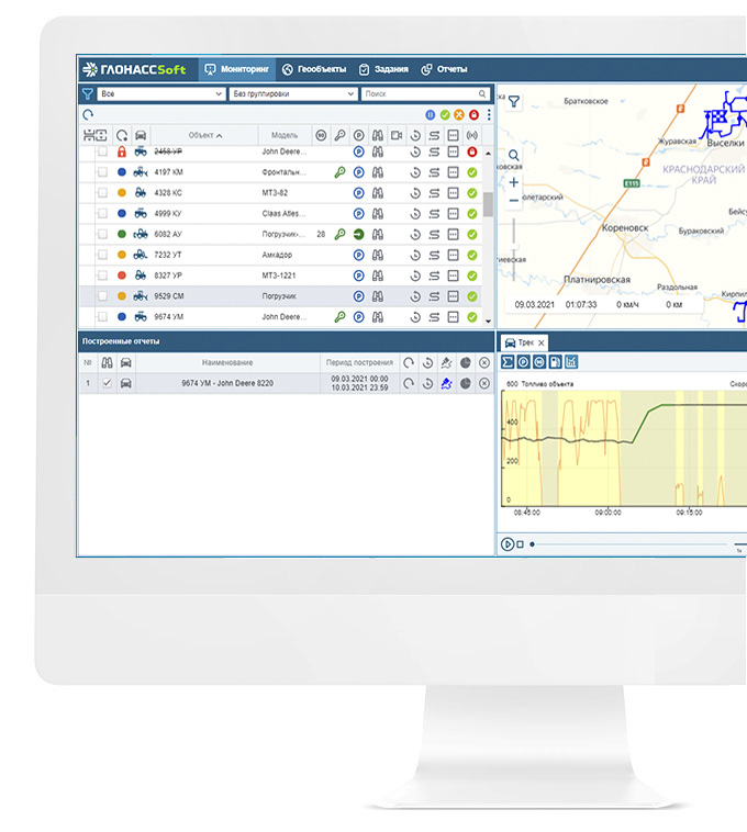 Отслеживание движения объекта по заданному маршруту; интерпретацию полученной от объекта информации в разнообразных отчетах (таблицы, графики) и многое другое.